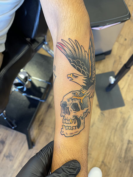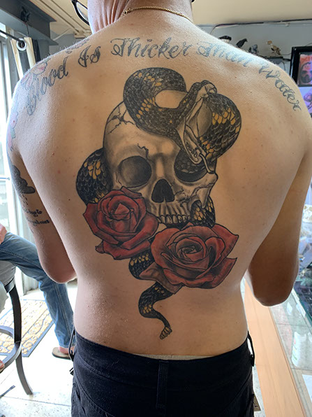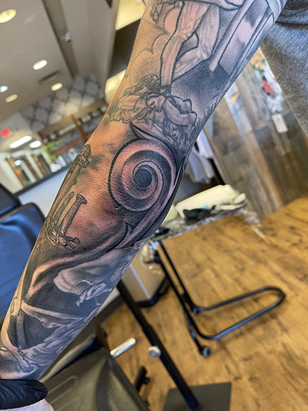 Eddie Cook-Hernandez is a military child that found his solace in art from a very young age. From looking at the “How to Draw: insert subject” books and redrawing what he saw in grade school, to art fairs in middle school, to receiving an apprenticeship to tattoo in Hawaii in March of 2018, he has always been interested in an array of different art mediums. The love for tattooing came when he was a freshman in high school since he saw it as a way to be happy in life creating art. Eddie’s goal for each and every client is that they have the most comfortable, positive, and professional experience to help change the stigma of the “intimidating tattoo shops and artists.” Eddie also sees tattooing as a form of medicine and healing for clients and even himself. He appreciates and values all the styles he can, with the end goal as an artist to be well rounded in most tattoo styles. The styles Eddie mainly does and wants to pursue are as follows: traditional, neotraditional, traditional Japanese, black and grey and color realism, new school, illustrative black and grey, watercolor, fine line black and grey, anime/manga, and indigenous tattoos based in the Americas from the pottery, textiles, architecture, etc.
