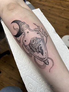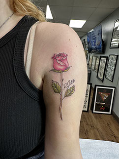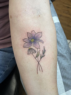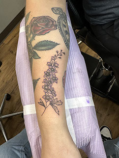 Shayla is a new upcoming tattoo artist who began her journey here at Black Horse Tattoo. Shayla was born and raised in Virginia. Throughout her life she always loved to be creative and making art for family and friends. Shayla’s goal when you sit in her chair is to have the most relaxed and comfortable experience whether it’s your first time or you’re an avid tattoo collector. She creates the upmost safe space for anyone who walks in the door. With her experience here she takes pride of her knowledge in technique, cleanliness, and tattoo history. Shayla appreciates traditional tattooing styles, fineline, floral, and abstract.